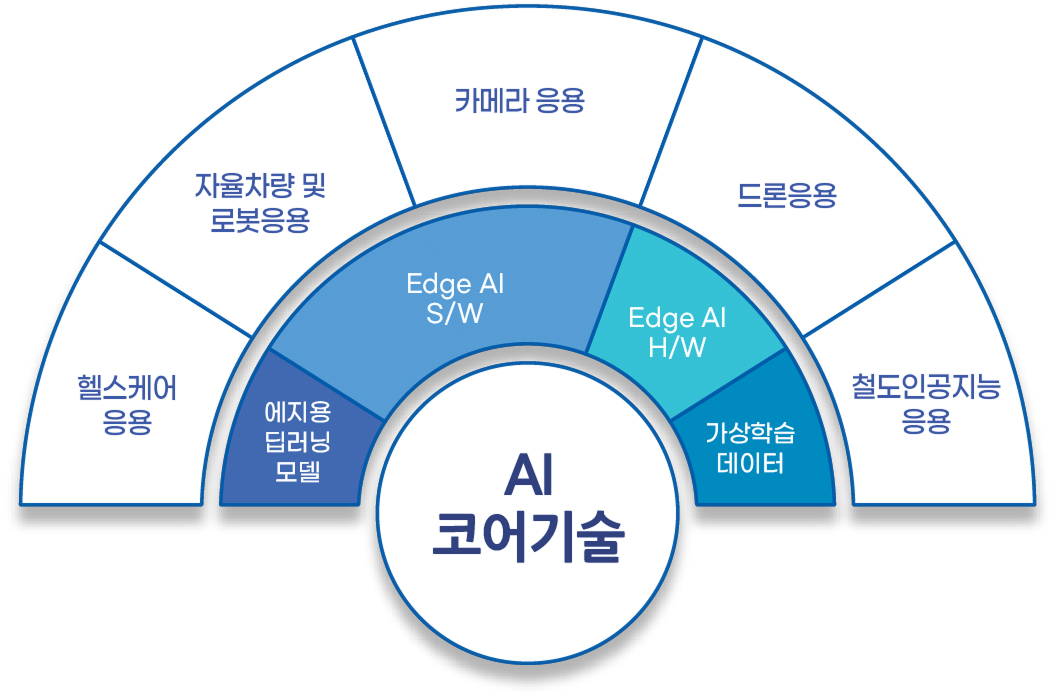 A2Mind는 기반 기술/제품인 AI에지처리기, 딥러닝 응용모델 및 학습용