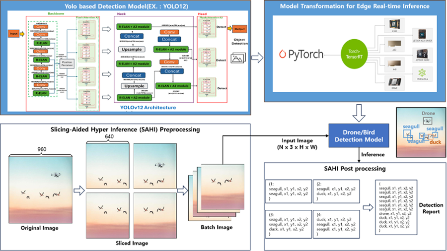 소형 드론 및 조류 등의 탐지성능의 증대를 위하여 SAHI(Slicing-Aided Hyper Inference) 방법을 적용하고 있습니다.